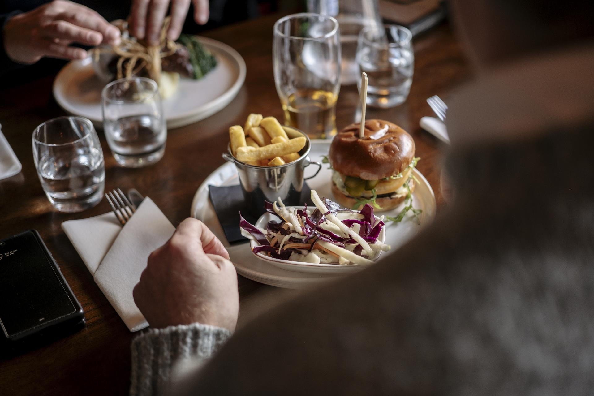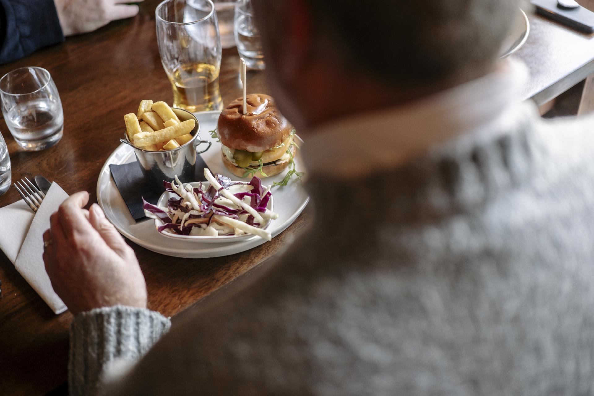 Belying the years of this lovely old building, our menu is bit more contemporary. Our chefs work hard at work producing modern British pub food with a twist, using the finest local sourced and seasonal produce to serve in this great pub environment.